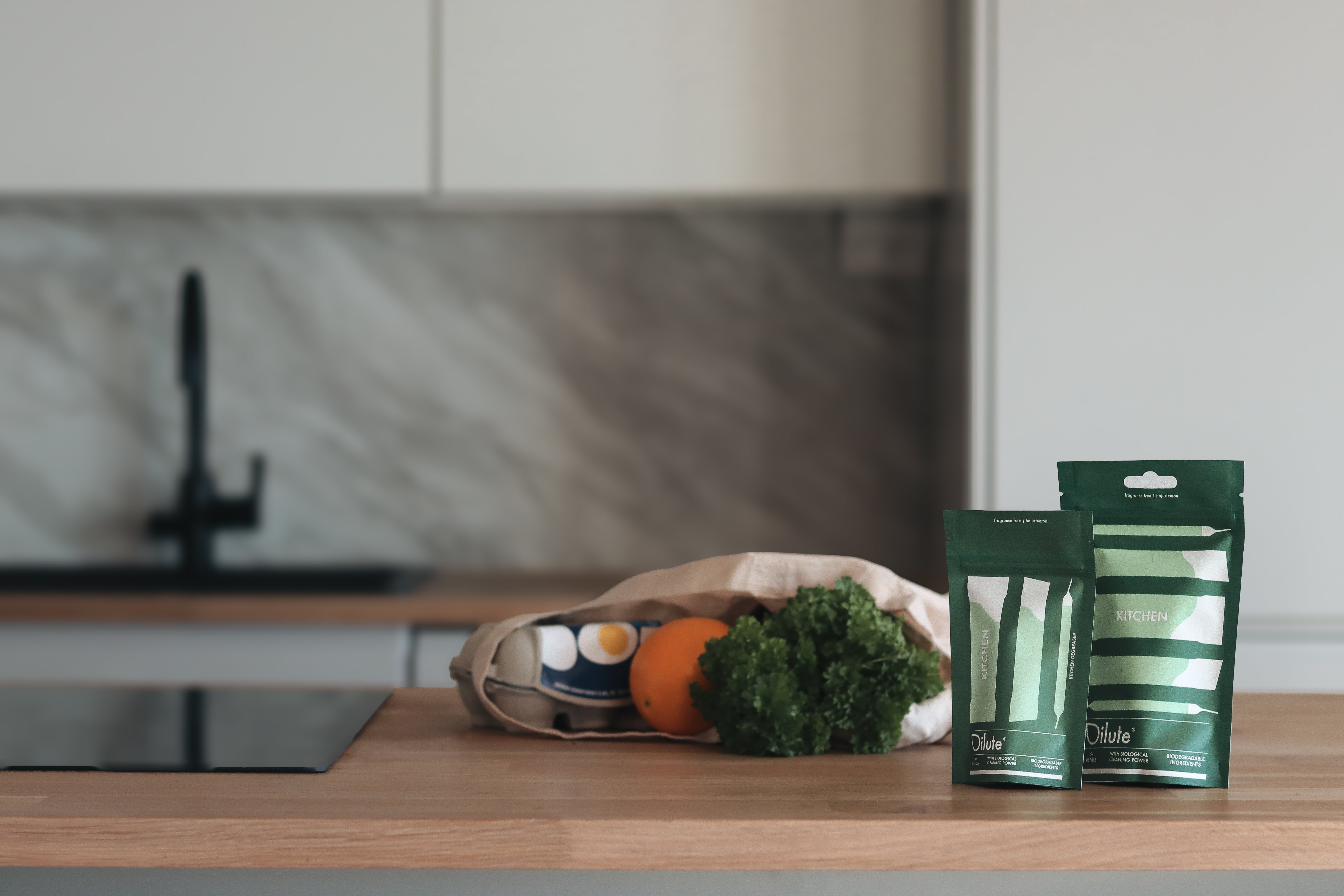 Dilute® toimitetaan tiivistetyssä muodossa ilman valmista nestettä, mikä vähentää merkittävästi pakkausmateriaaleja ja kuljetusjätettä.